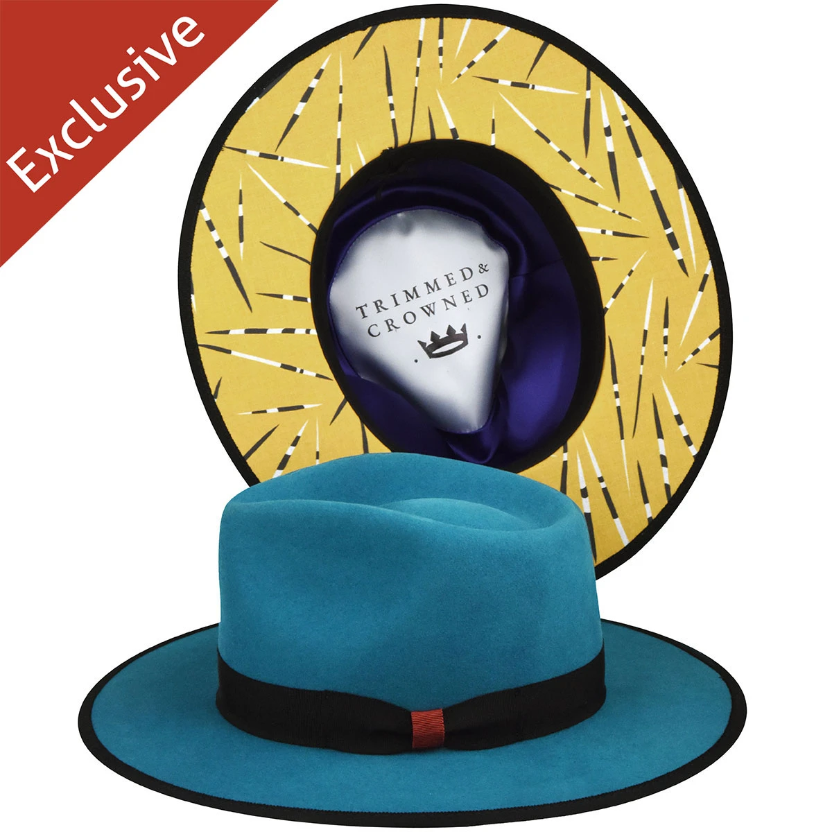 The 216 Fedora is a vibrantly colored fedora accented with a black grosgrain band with a coordinating crosspiece and trimmed with a black grosgrain brim binding. The patterned under-brim sets this fedora apart from the others. A colorful crown of impeccable quality rocks in Cleveland or anywhere! The 216 Fedora features: