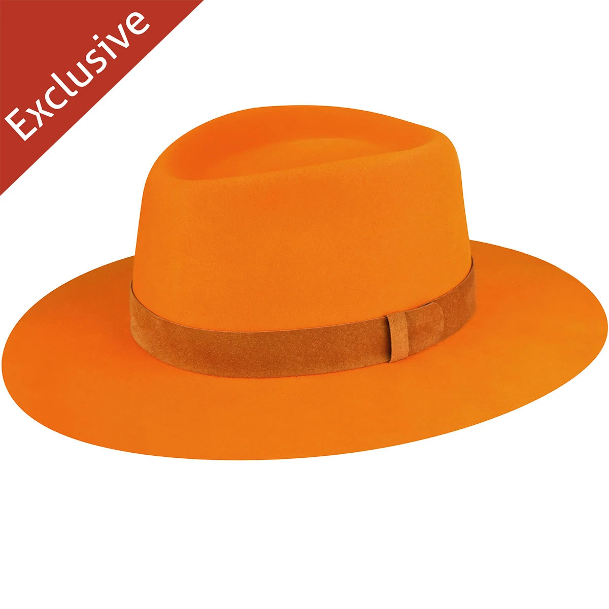 Whether you call it the Big Peach or the Big A, the 404 Fedora will keep you looking hip in Hotlanta. This stiffened flat brim fedora features a matching sueded band and cross piece and is offered in 2 seasonal colors: autumn glory orange and quartz pink. This crown is a peach in Hotlanta or any land!