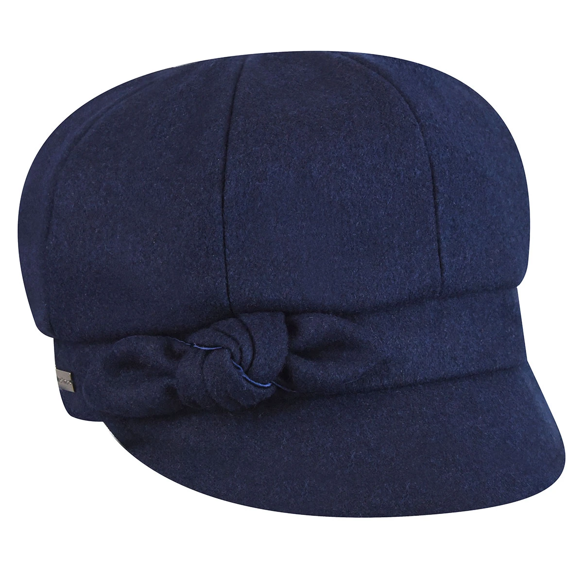 Perfect for a day around town, running errands or lunch with friends. This Betmar Adele Cap has a self side knot trim and Betmar pin above it’s stingy brim for just a hint of femininity. It is fully lined and has a hidden elastic Back to keep it secure. Offered in a range of colors, its the perfect hat for a brisk autumn day!