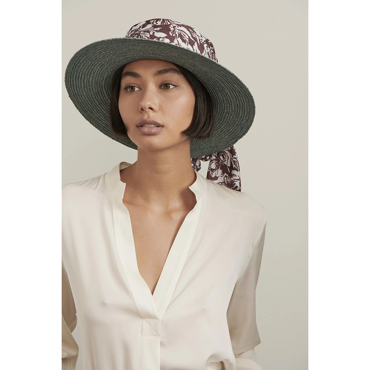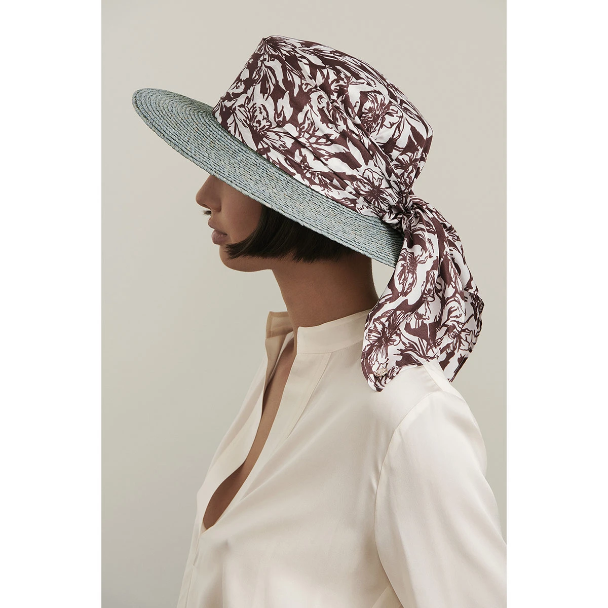 The Aster Boater by Helen Kaminski is a refined and chic boater with a playful scarf detail. Crafted from Raffia braid, then Aster is accented with a silk scarf that can be worn multiple ways. Knot it as a band, or over the entire crown, the remove-able scarf allows you to wear it your way. The Aster Boater is UPF50+ rated for sun protection and has a sateen elastic size adjustable inner band for comfort and fit.