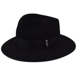 Auman by Bailey 1922 is a vintage inspired Fedora, featuring a raised front teardrop crown with a 2 3/4″ Brim. Crafted from a blend of Rabbit Fur and Beaver Fur, this Superior Fur Felt style is trimmed with a Japanese grosgrain band with a chain link detail. It is fully lined and finished with a Fine Woven Sweatband.