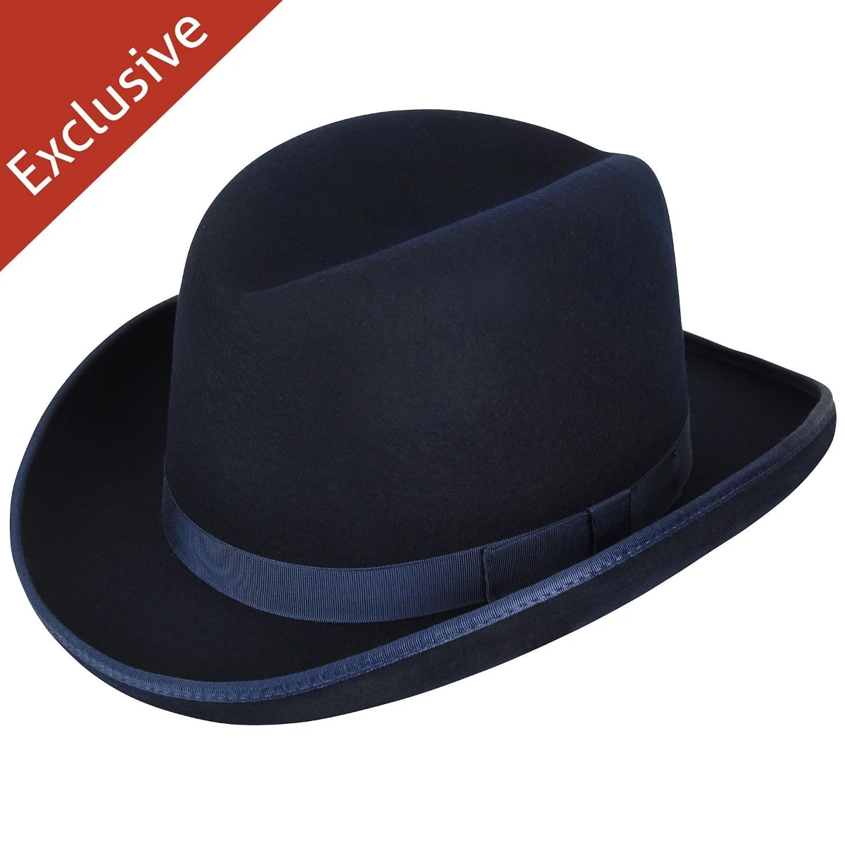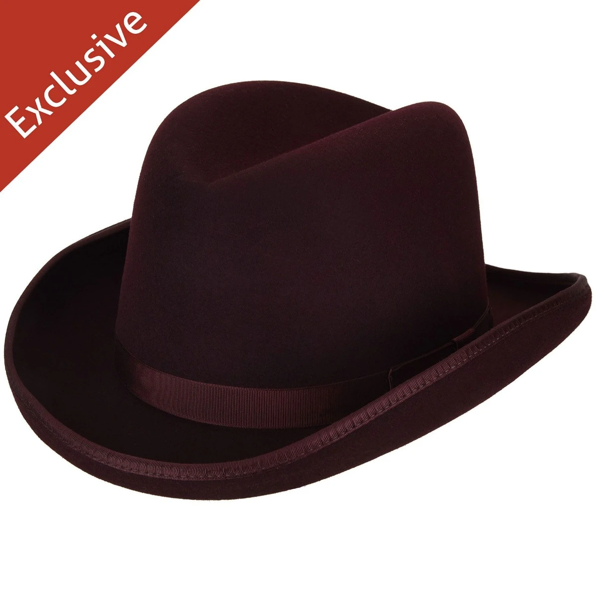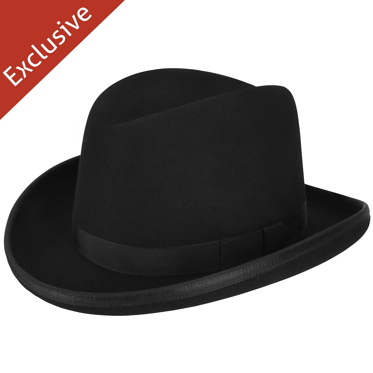 You have seen the homburg shape on powerful figures like gangster Nucky Thompson from Boardwalk Empire, hip hop star Notorious B.I.G., and even Winston Churchill. The Hats.com Big Boss Homburg is crafted with 100% wool and entirely made in America. This traditional homburg has a tall 5″ homburg center crease crown, a 3″ curled brim with a wrapped edge, and a classic grosgrain hatband.