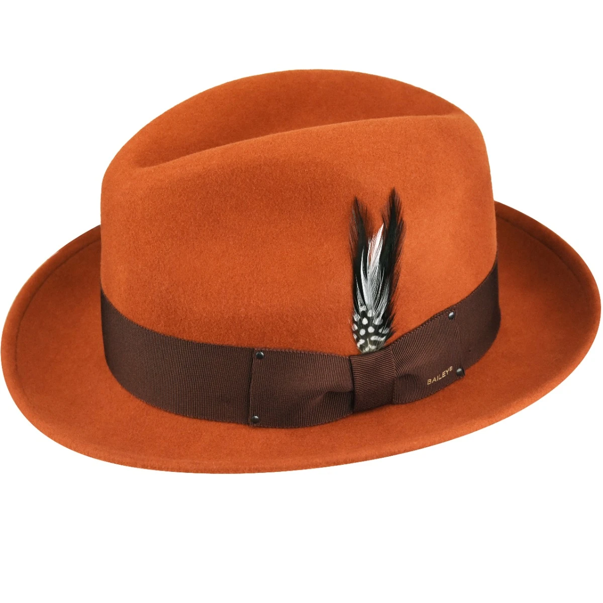 The Blixen is made with the incredible Bailey 1922 LiteFelt® finish, a revolutionary treatment process that takes a natural unstiffened premium wool felt hat and makes it water repellent and shape retentive. LiteFelt® adds a tough and indestructible element, combining style and function. Boasts a laser etch wordmark logo, black nailheads on a Japanese grosgrain hatband, and a comfort sweatband. Made in the USA.