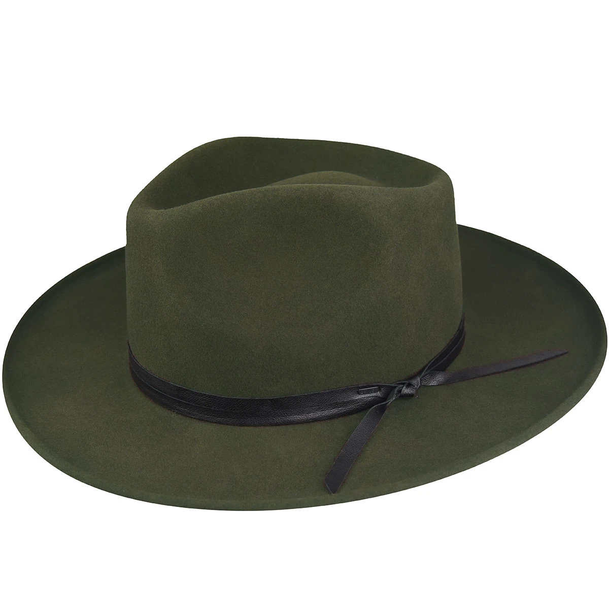 - Trimmed with a thin leather band wrapped around twice and knotted for a fashionable flair