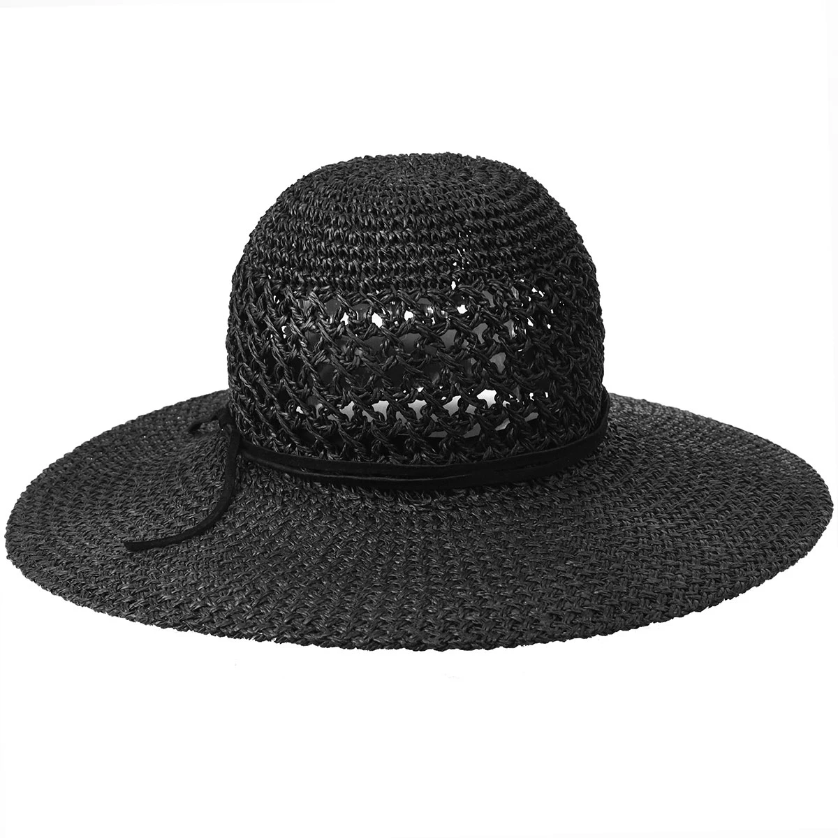 The Coretta by Betmar is a raffia like wide brim floppy hat with a beautifully crocheted crown. It has a thin faux suede cording accenting the crown and ties as the side of head to give a simple yet stylish finish.
