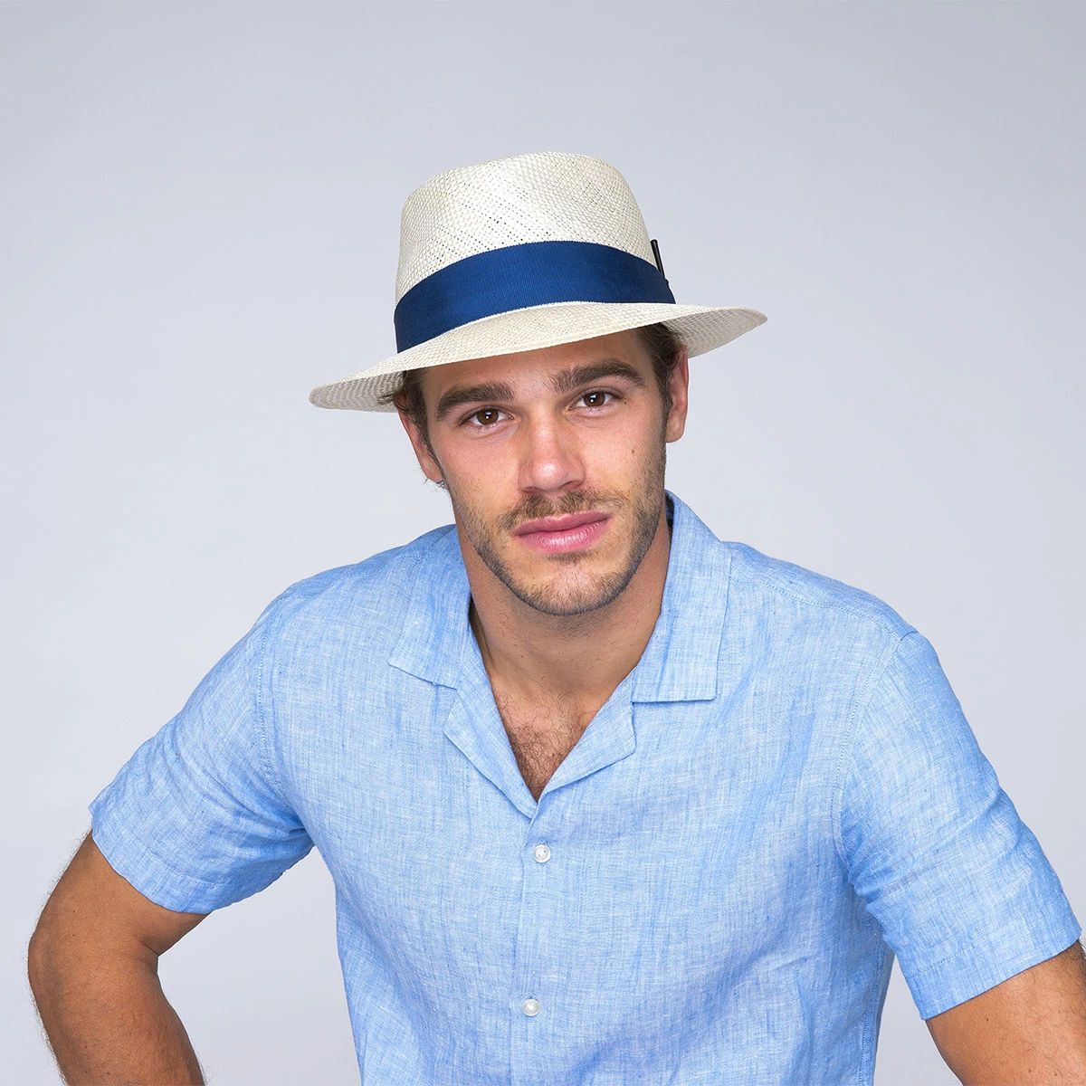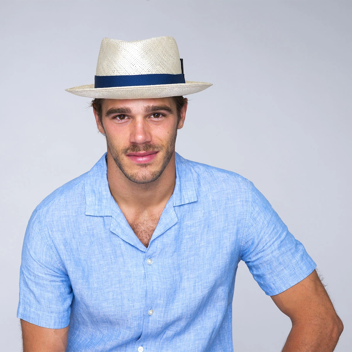 The Costigan by Bailey 1922 is a Sisal Fedora featuring a rounded teardrop crown and medium size brim. The Costigan has been treated with Bailey’s proprietary LiteStraw® technique, making it durable and water repellent. It utilizes 3 colors of Japanese grosgrain that is pieced together for a colorblocked look. It’s finished with a matte black dipped flooring nail for the signature Bailey look and a comfort sweatband.