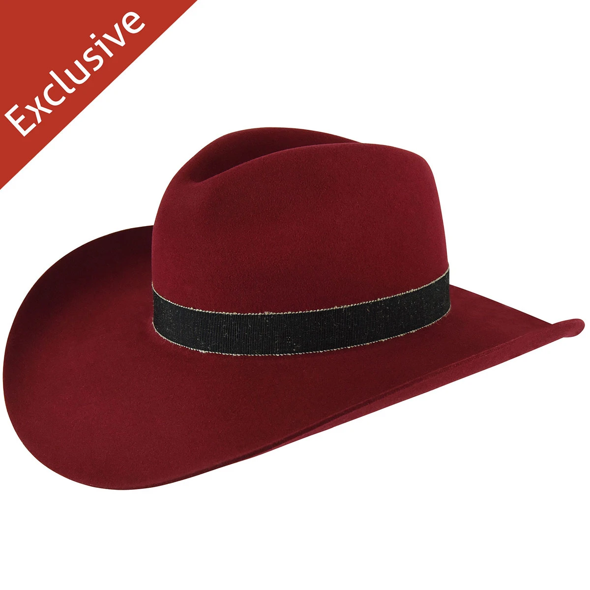 - Raw edge fedora with a western-inspired brim in the color red lacquer