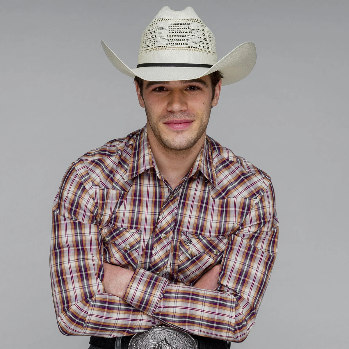 Stay cool and comfortable in the Desert Breeze by Bailey Western, whether or not you are combing the desert or concealing your uncombed hair! This western hat is handcrafted from durable Bangora straw and features a unique ultra-vented crown accented with a black 2-ply band and a revolutionary Dri-Lex® sweatband. The classic 4 3/4″ Marlboro crown commands respect no matter your travels, the Bailey Western Desert Breeze presents a classic western motif with a breezy attitude.