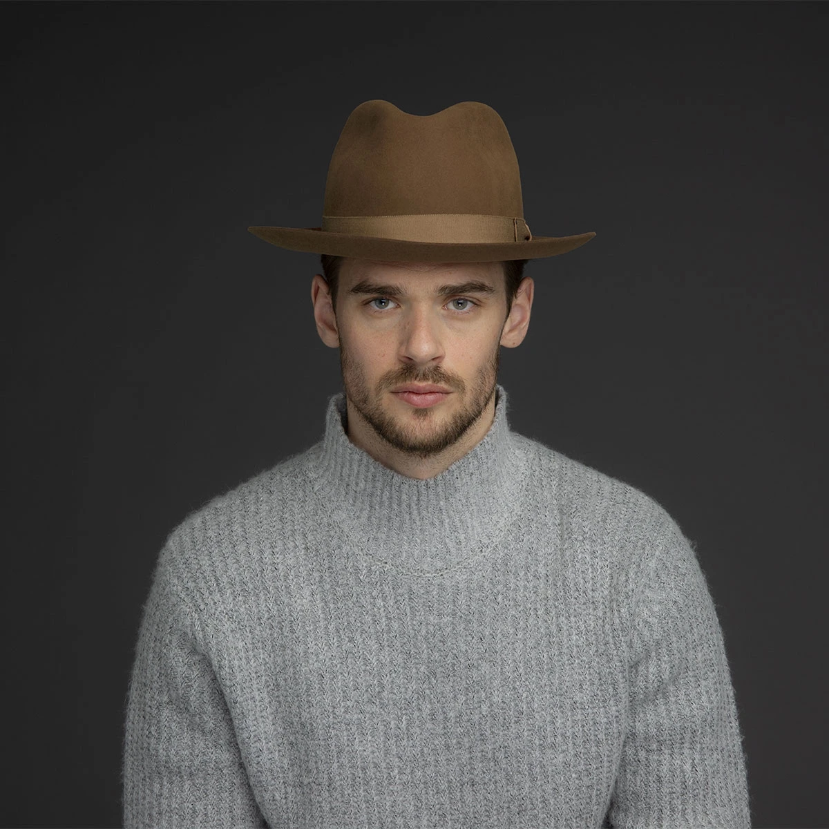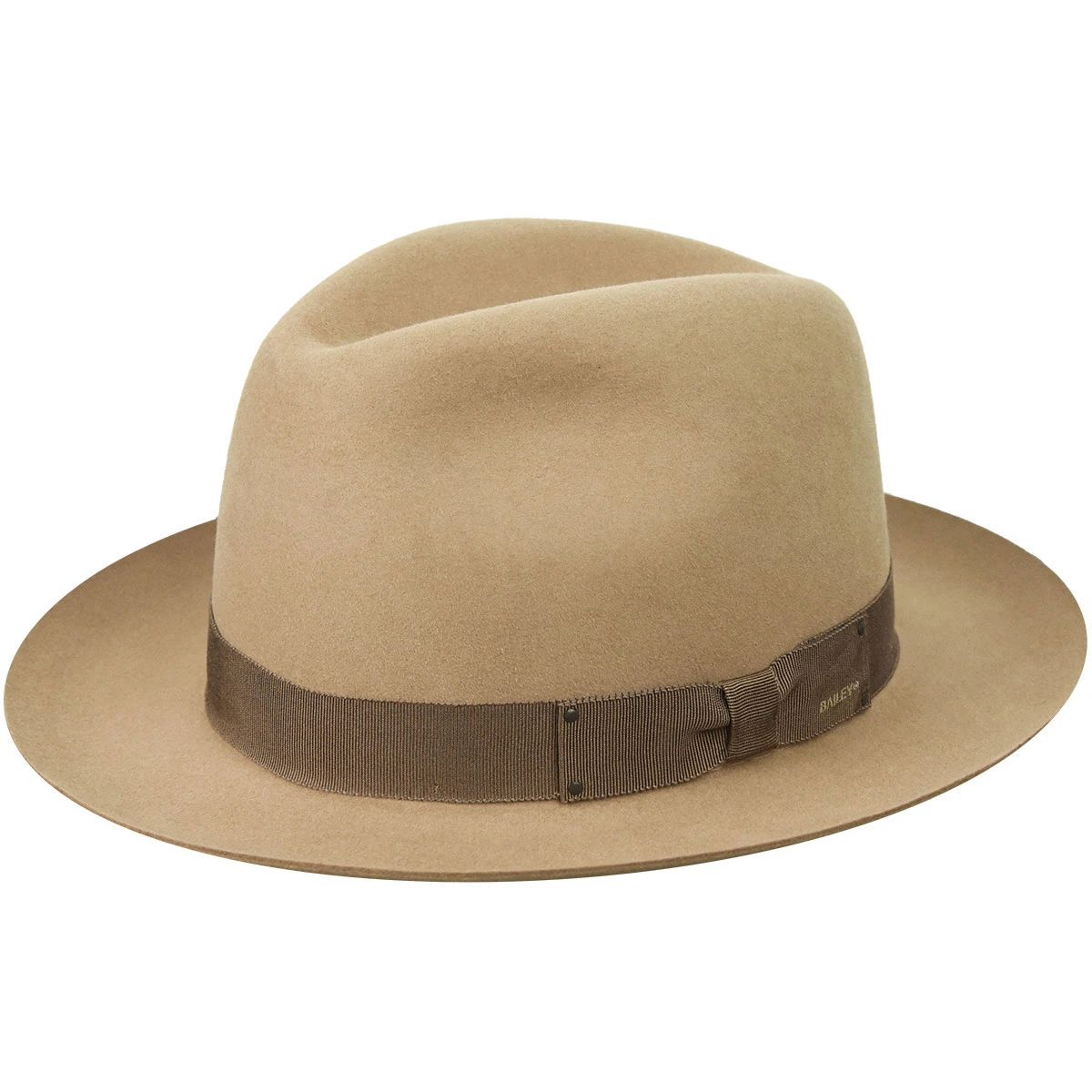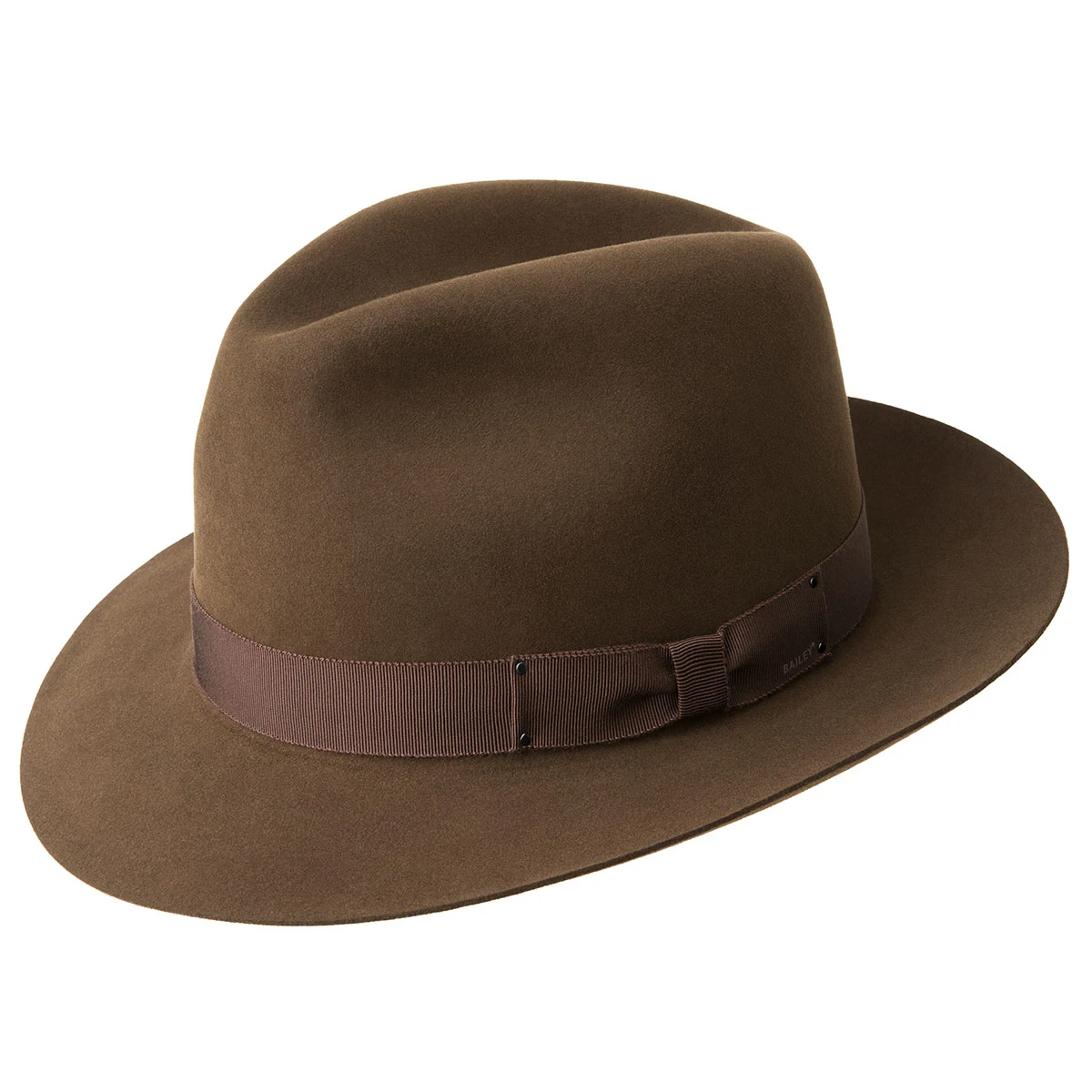 Bailey 1922’s Est.1922 hats highlight heritage and distinctive styles that are classic, timeless and essential to every Bailey man of style who appreciates distinctive details with decades of quality, craftsmanship and experience. Bailey took shapes from the archives and tweaked them for the contemporary man. The Draper III hat is made from Superior Fur Felt, using premium rabbit and hares fur. The world’s best felting techniques are then used to create an ultra thin felt achieving the finest quality and lightest weight available. These hats look best when worn in and finger shaped to reveal your own individual style. 40% beaver/60% rabbit. Nailhead detail on grosgrain band. Classic woven ‘What’s On Your Mind’ lining. Laser etched Bailey logo. Made in the USA with Globally Sourced Materials