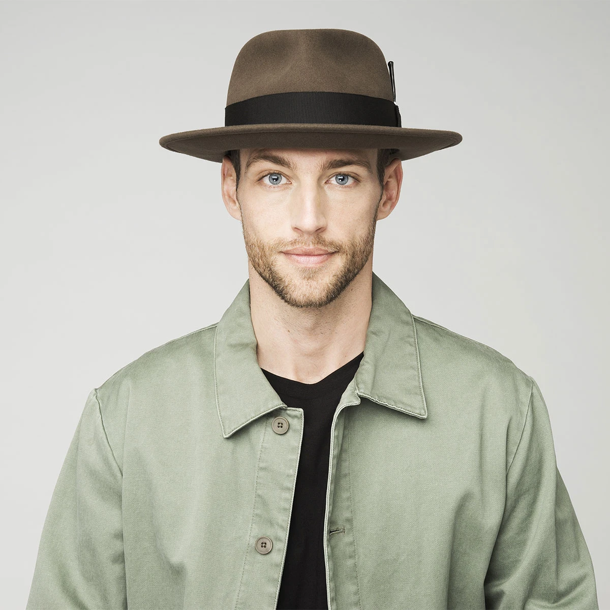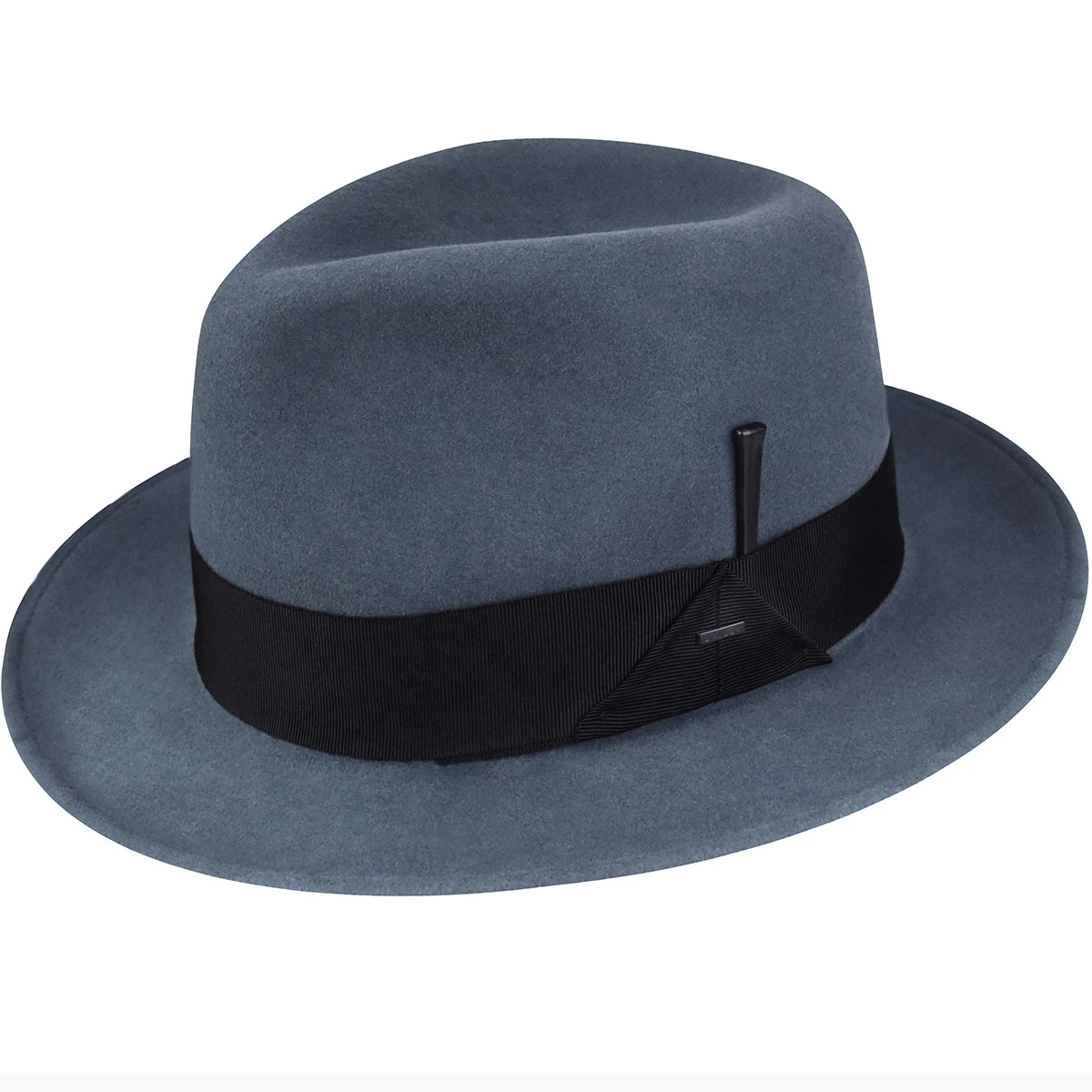 Bring a touch of formality to your outfit with the classy Bailey 1922 Ellett Fedora by Bailey 1922. The hat features a pinch-front crown made of 100% wool felt with an elite premium finish for that super-sleek feel and a 2 3/8″ brim. It’s finished with a beautiful wide-style Japanese grosgrain ribbon, black-dipped flooring nail, and the iconic Bailey’s signature double-triangle fold.