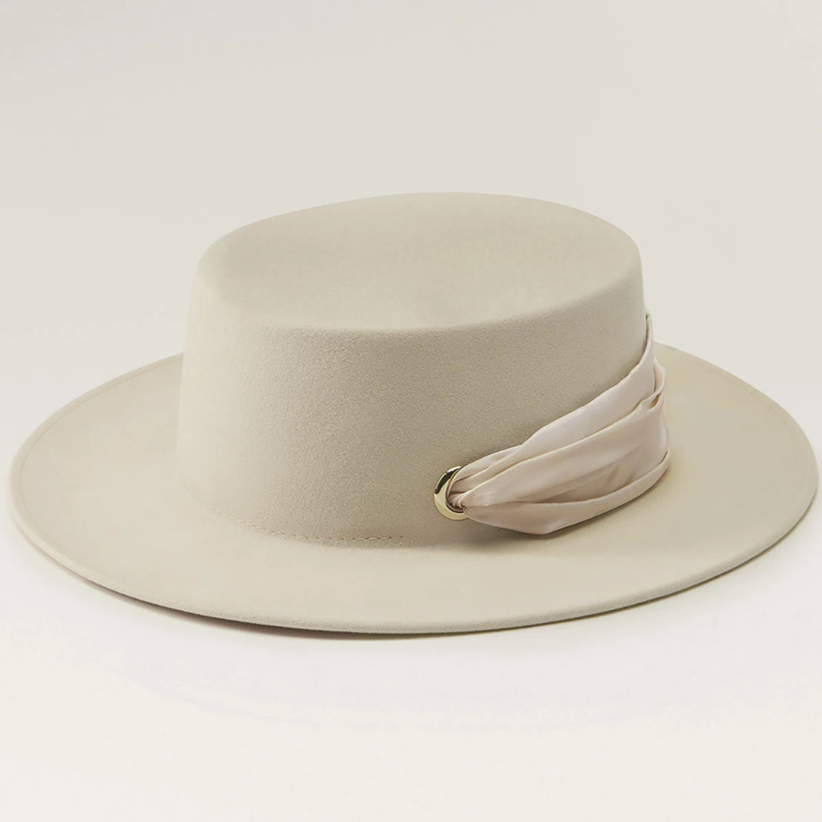 A Nod To The Hallmarks Of Couture. Falaise Is Our New Season Sumptuous Boater Silhouette That Has Been Hand Blocked In Spain From Traceable, Ultra Fine Barunah Plains Australian Merino Wool Felt And Adorned With An Extra Wide 100% Silk Taffeta Scarf That Can Be Tied Into An Oversized Bow, Or Left To Hang And Flow. Feminine Detailing, Exaggerated Accents And Soft Textures Speak To The Opulence Of This Timeless Piece. ;Care: To Maintain Felt Brush Gently In