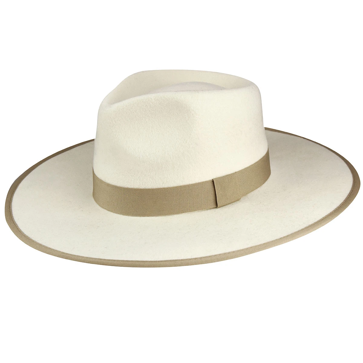 The Adore You Fedora by Goorin Bros is a classic flat brim fedora. The table top brim is accented with a grosgrain hatband and matching brim binding.