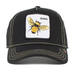 The Queen Bee Trucker Hat by Goorin Bros. is part of their infamous Animal Farm Collection. One of their best sellers, this trucker features a honey bee patch with QUEEN embroidered on it. The natural characteristic of this hat is subject to fading and patina with wear. Who runs the world?