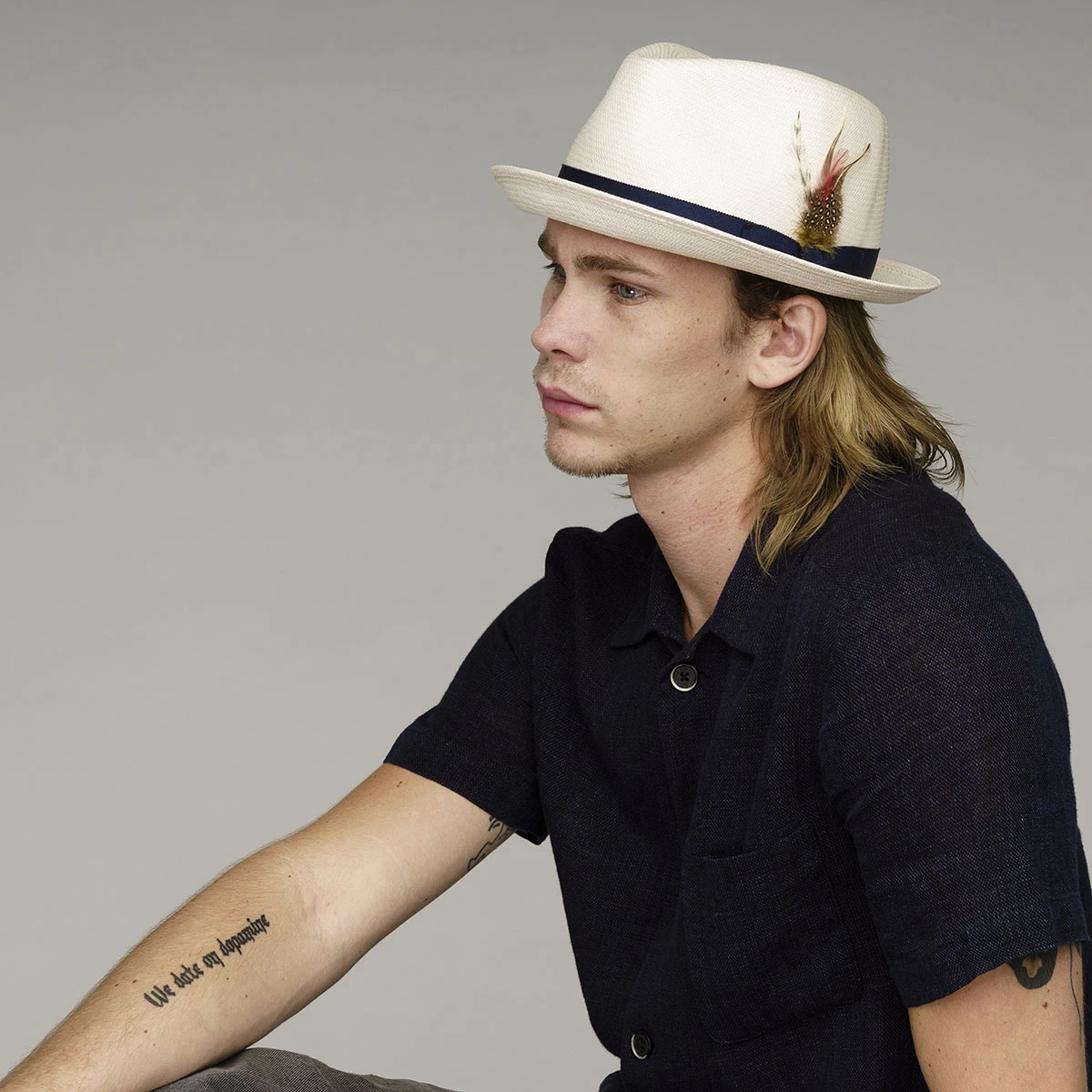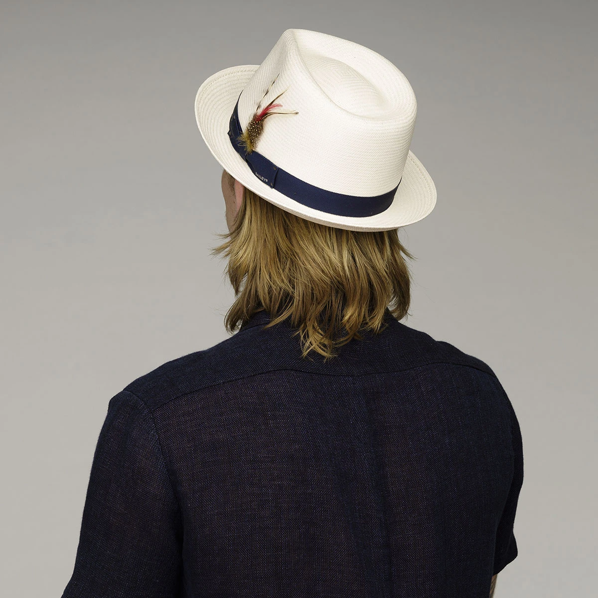 The Guthrie is a classic, ultra-flattering shape that is available with a seasonal array of band colors accented with a removable feather. A Shantung ‘straw’ hat is made from high performance paper, rolled into a fine yarn and then woven, a process perfected by the Japanese in 610 A.D. This lighter yet very strong material offered a perfect panama alternative, and was dubbed the “Shantung Panama” and crafted into the shape of a teardrop fedora. But you don’t need a degree in Japanese history to appreciate a superbly made piece of headwear. Our finely woven Shantungs are glazed with our proprietary LiteStraw® finish to provide a supple feel, water repellency, and enhanced shape retention. And now, when you buy it from Hats.com, you can get this unique offering at a price no other outlet can touch.