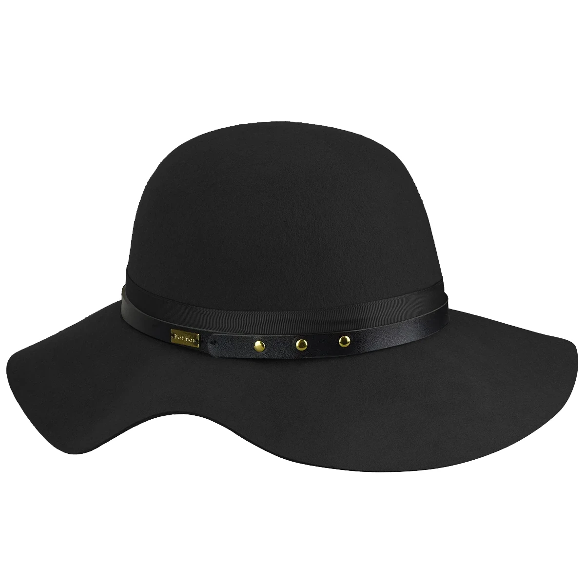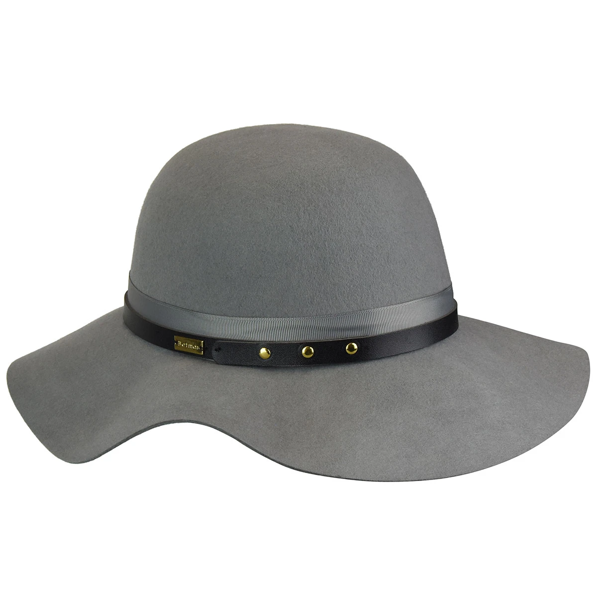 An elegant, confident autumn winter floppy wide brim, the Betmar Hayden is made with 100% wool. It features a grosgrain ribbon band with a leather band overlay and stud details.