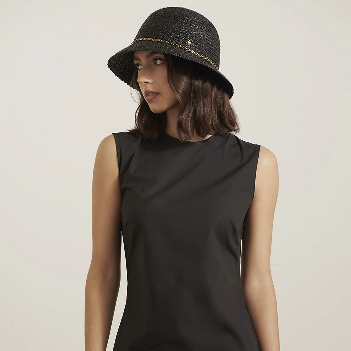 The Inka by Helen Kaminski is a beautifully, chic, scallop raffia braid cloche. The feminine details and silhouette features: