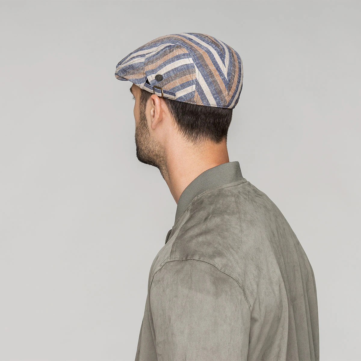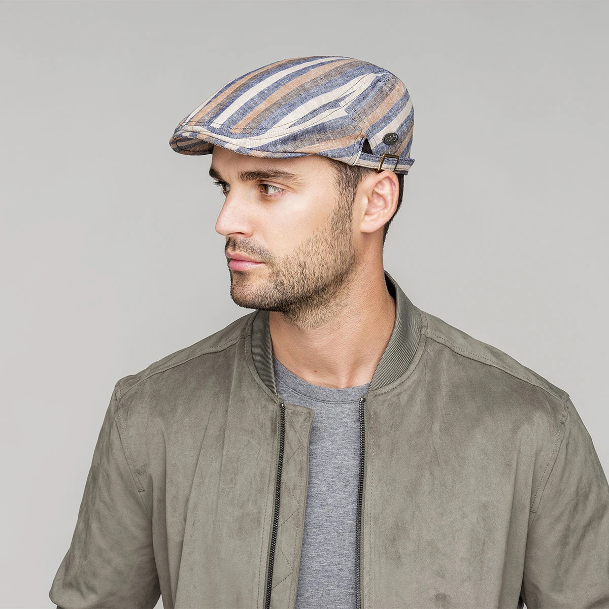 The Jaxson Flat Cap by Bailey 1922 is the perfect warm weather stripe flat cap. If you have a passion for stripes, this striped flat cap is for you. Crafted from a cotton and linen blend, the Jaxson features: