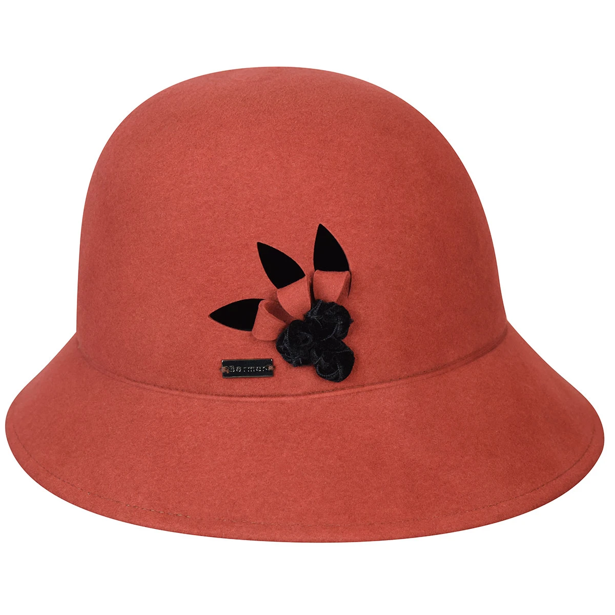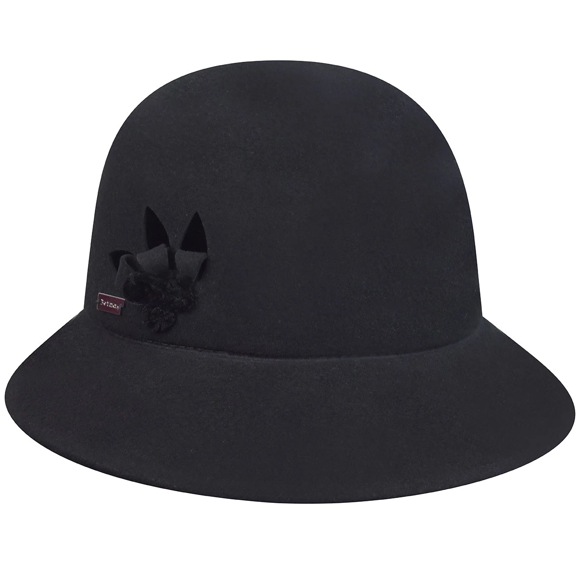 The Joelle Cloche by Betmar is a classic cloche shape with a cut-out abstract petal motif that gives it dimension. The velvet ribbon flowers compliment the cut-outs and it is finished with the Betmar pin. The hat has an interior adjustable sweatband for a customized fit.