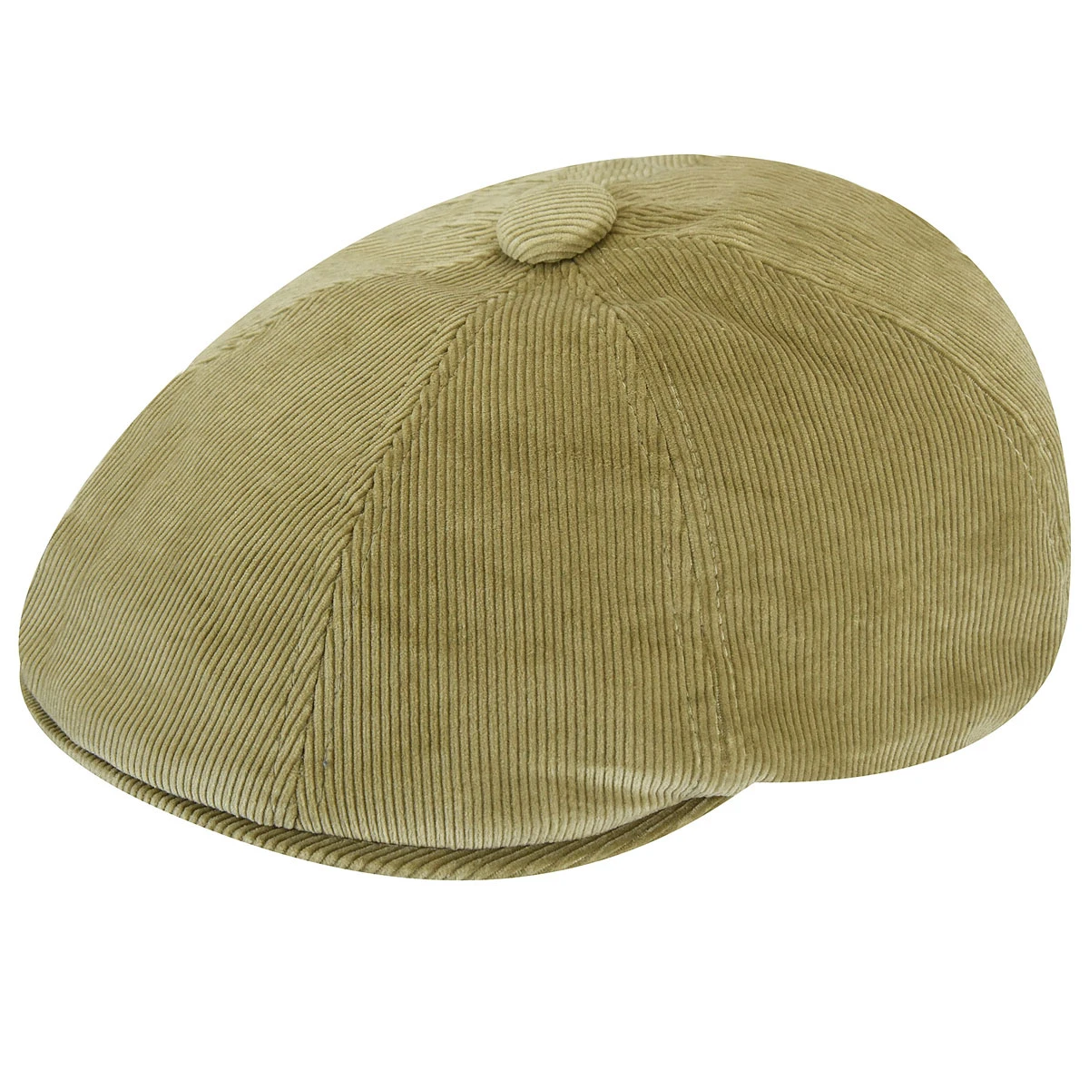 The Kangol Cord Hawker is an 8-panel cap with the addition of a fillet. The fine whale cord & timeless shape make it the perfect hat for all seasons. The internal seams are taped with cotton. The cross hatching on the embroidered kangaroo logo adds definition and subtle style.