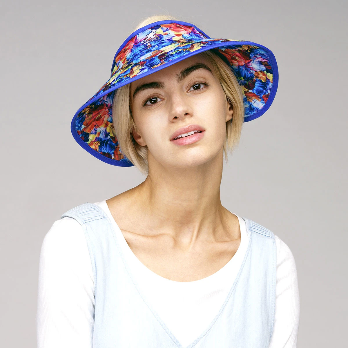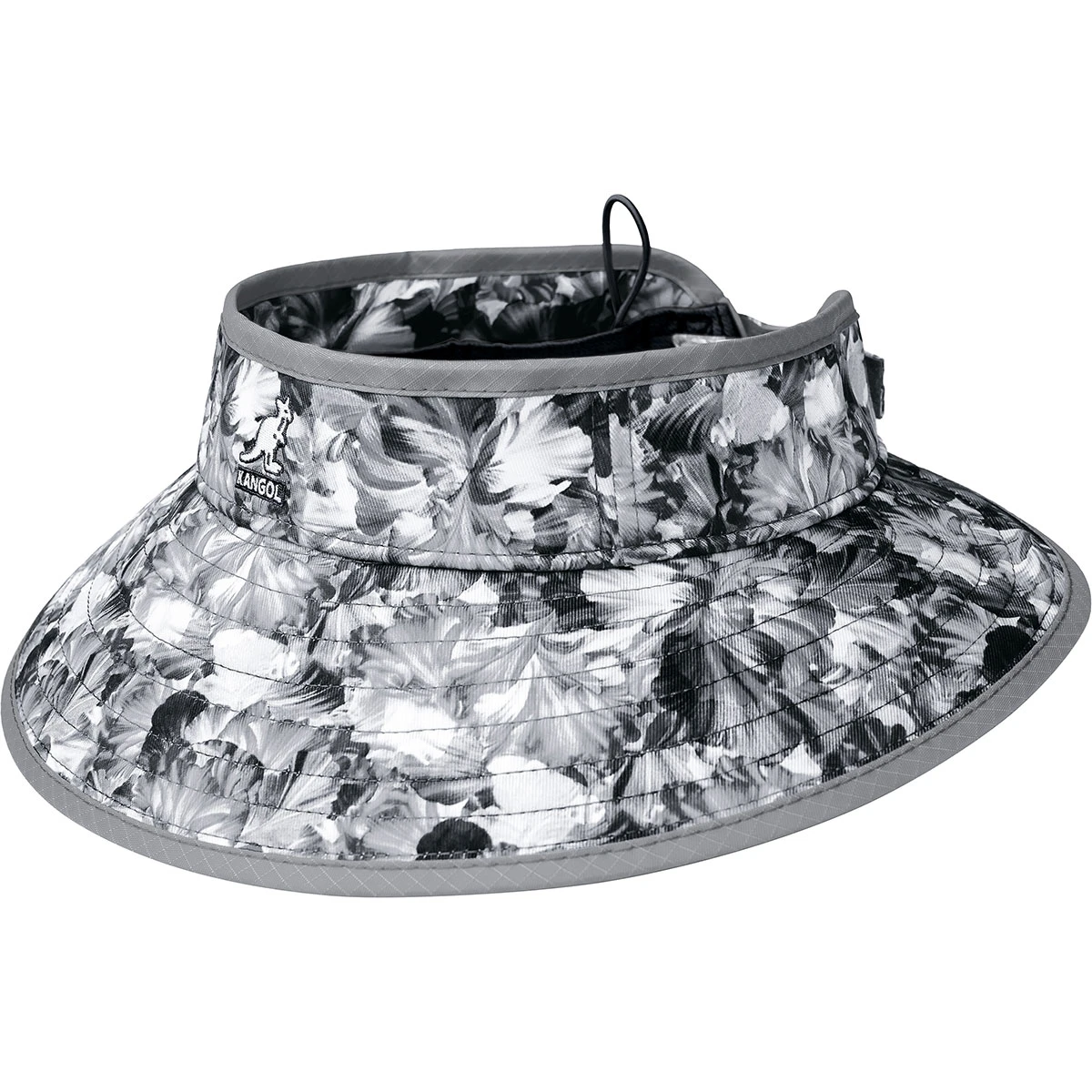 The Floral Visor by Kangol has a 3D effect floral print on a rollable and packable visor shape. The visor gives maximum sun protection and a velcro adjuster assures the fit will be perfect. An elastic loop at the back allows you to roll it and secure it for easy take-along. It’s finished with the Kangol kangaroo logo at the front.