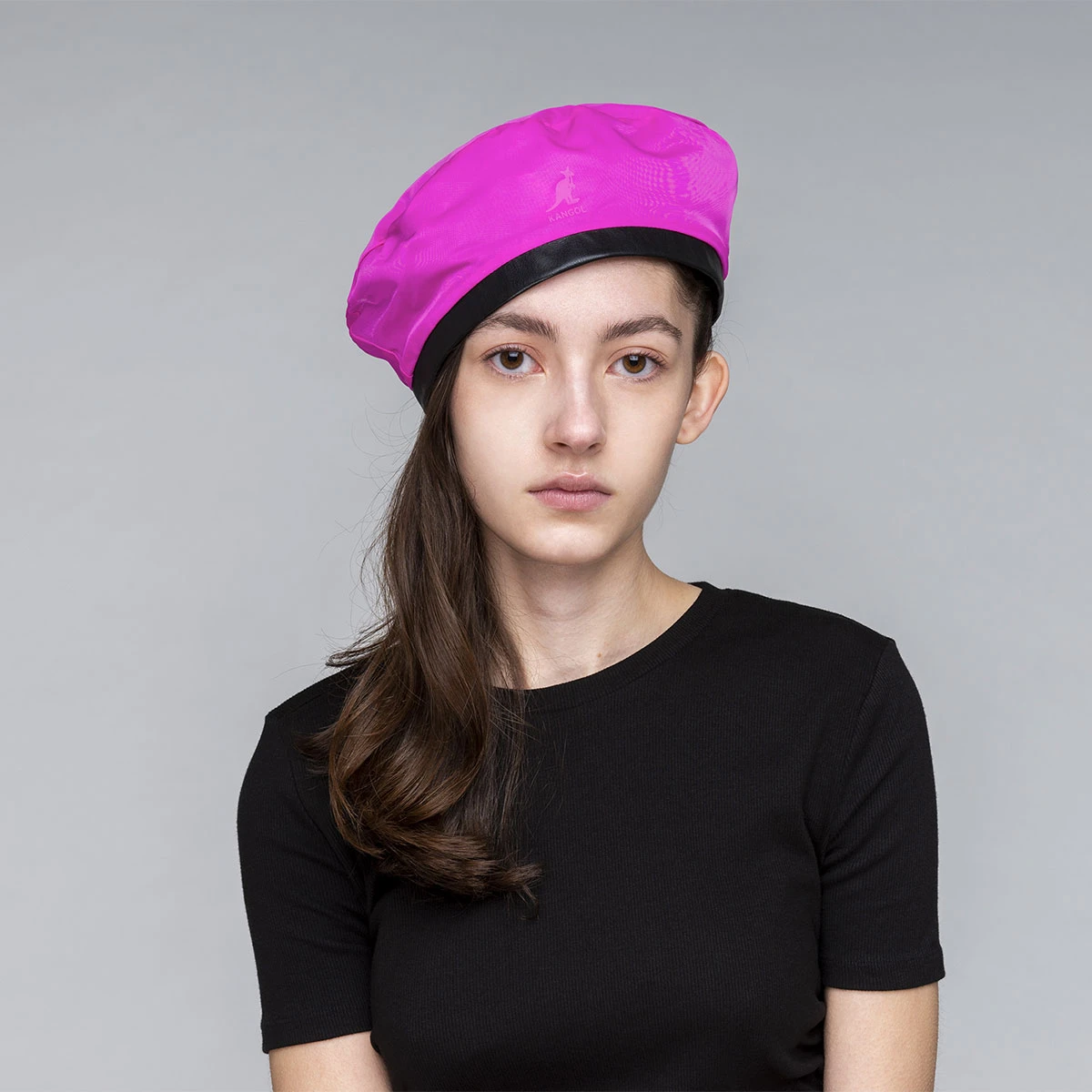 The Nylon Plush Reversilble Beret by Kangol is cute and cozy meets chic and cool. With one side crafted from Kangol’s cozy faux sherpa material, the reverse side is crafted from a nylon shell inspired from a flight jacket. It is trimmed with a faux leather band for a sleek look.