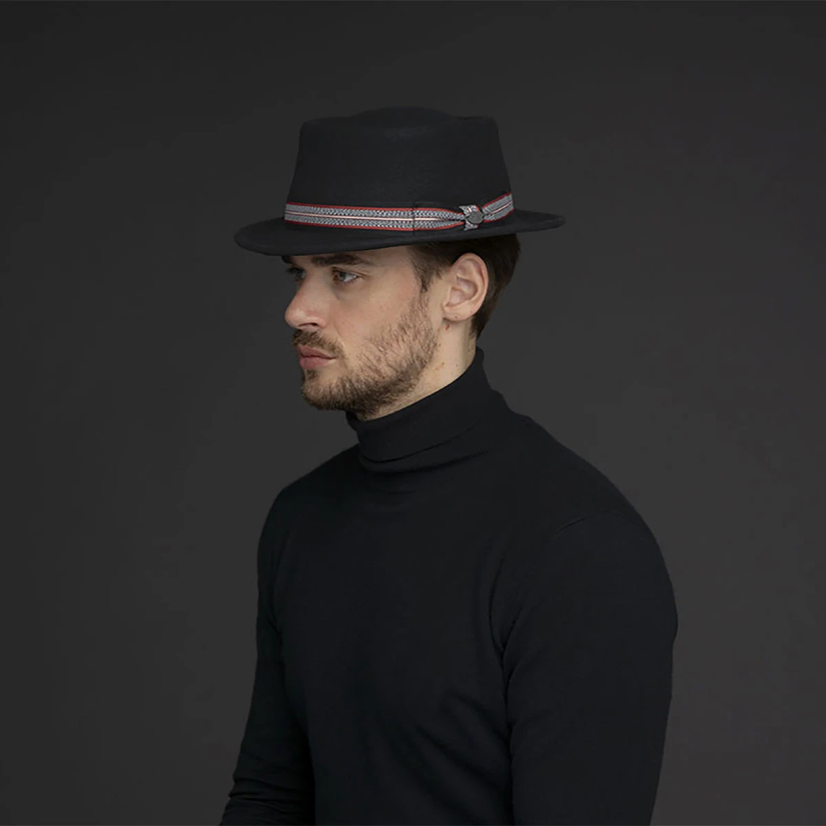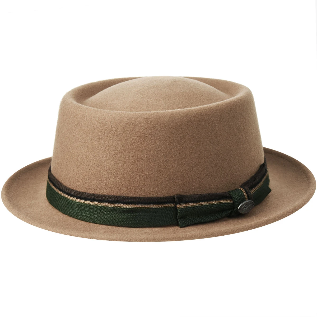 The Klaxon Pork Pie by Bailey 1922 features a telescope crown and a 2″ brim. Crafted out of a soft Wool Felt body, this style is finished with a striped grosgrain trim, is fully lined, and has a comfort sweatband to ensure a perfect fit.