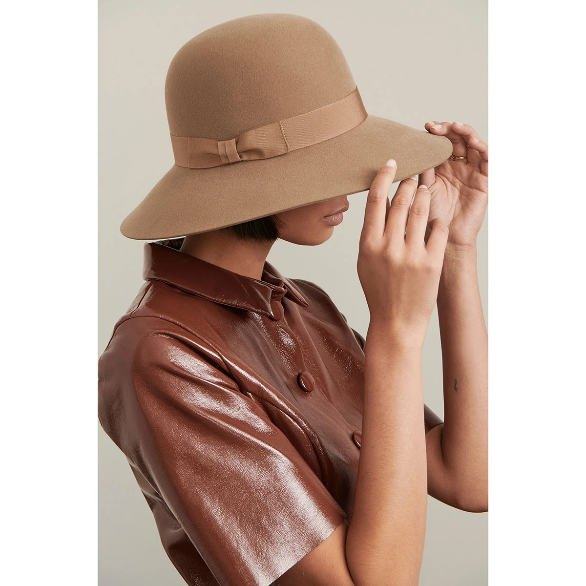 The Helen Kaminski Letta Floppy is a classic and timeless brim hat that’s handcrafted to create the perfect glam-look for autumn and winter wear. It’s made of 100% wool felt and features a round crown with a wide 3 1/2″ angled brim. Made in Spain by Helen Kaminski, this floppy brim hat boasts a long-standing tradition of sleek craftsmanship and quality since 1885.