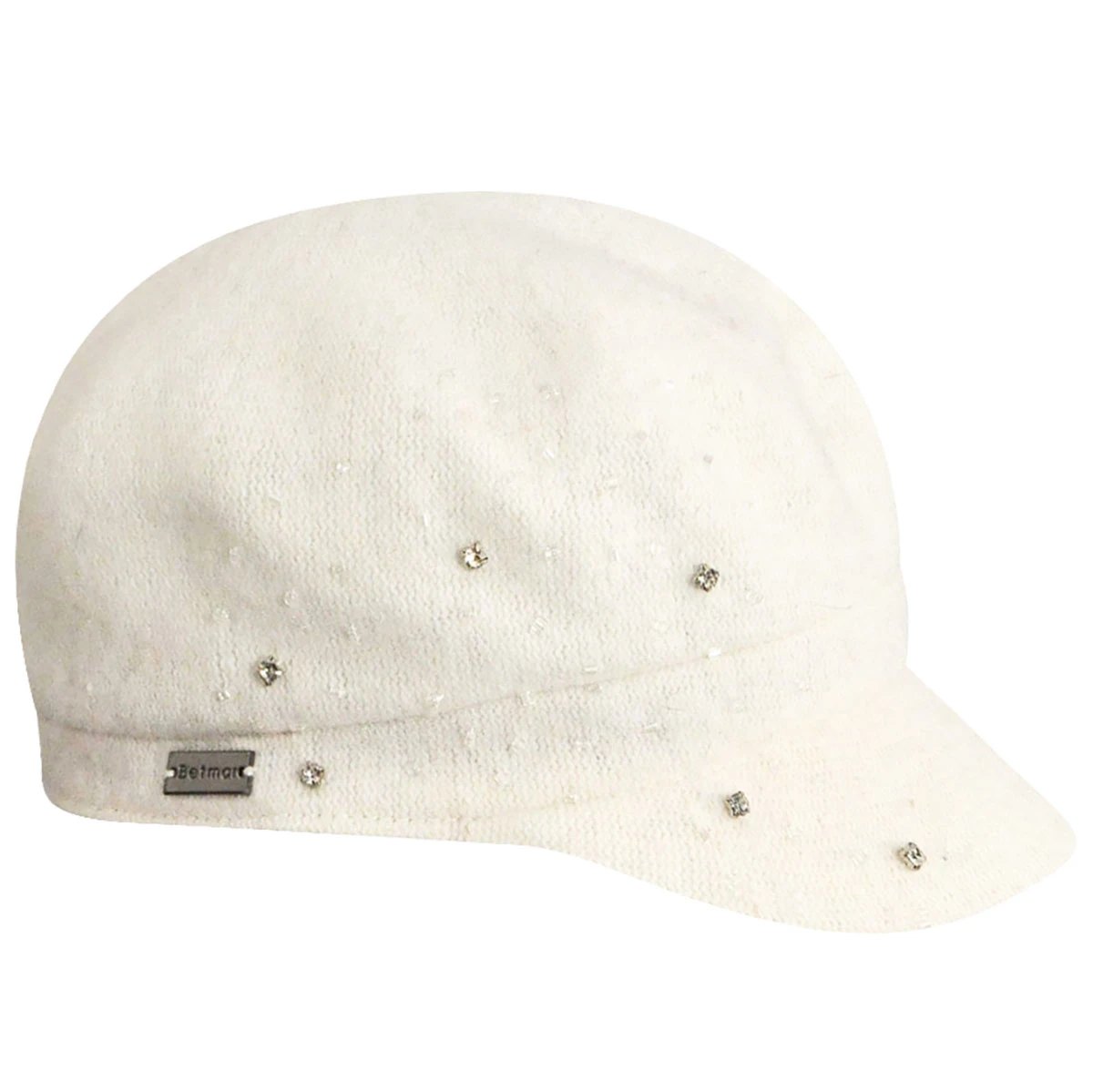 Make your look sparkle and glisten this season! The wool blend Lynn Cap not only looks amazing, it provides warmth and coziness! This fashionable cap has an eye-catching decorative design that features shiny beads and faux gem details on the crown and brim.