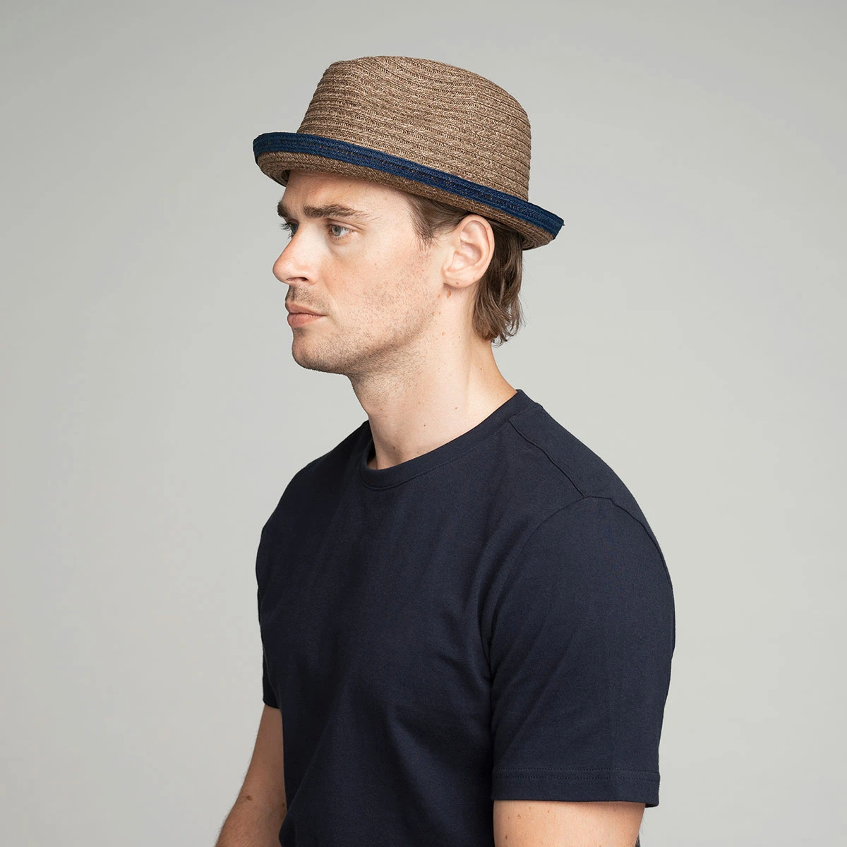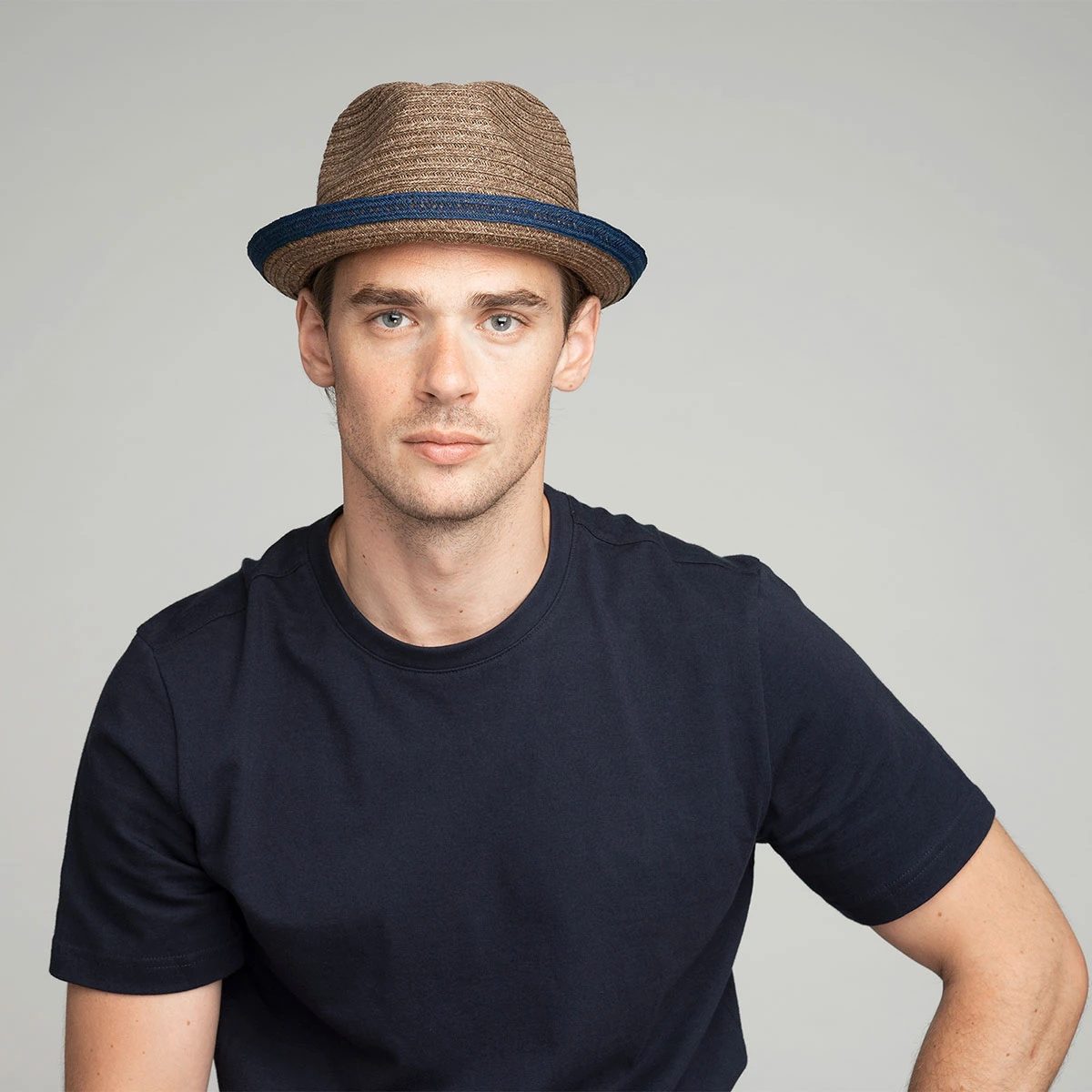 The Noakes by Bailey 1922 is a light weight, fine Toyolene braid Trilby featuring a stingy brim. With a pop of color accenting the underside of the snap brim, the Noakes is stylish and fun and adds a bit of edge when you’re in the mood.