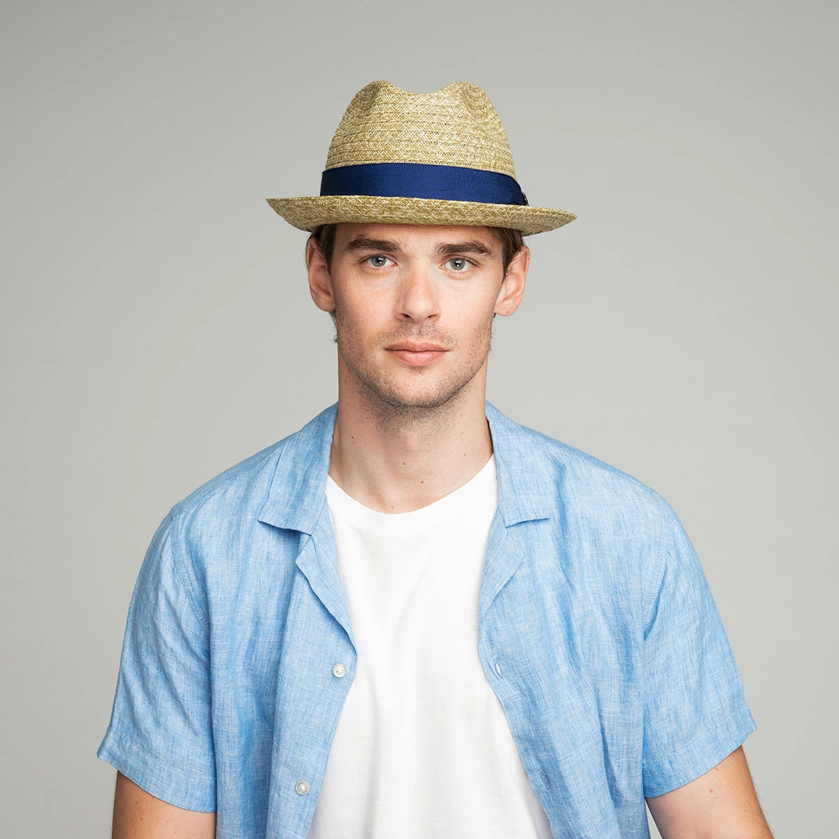 What happens when you combine the beauty of Bailey’s popular braids with fine raffia straw? The Romeo features naturally multi colored raffia straw braid in a medium brim fedora with grosgrain band complete with contrast raffia braid piping. A statement in elegance.