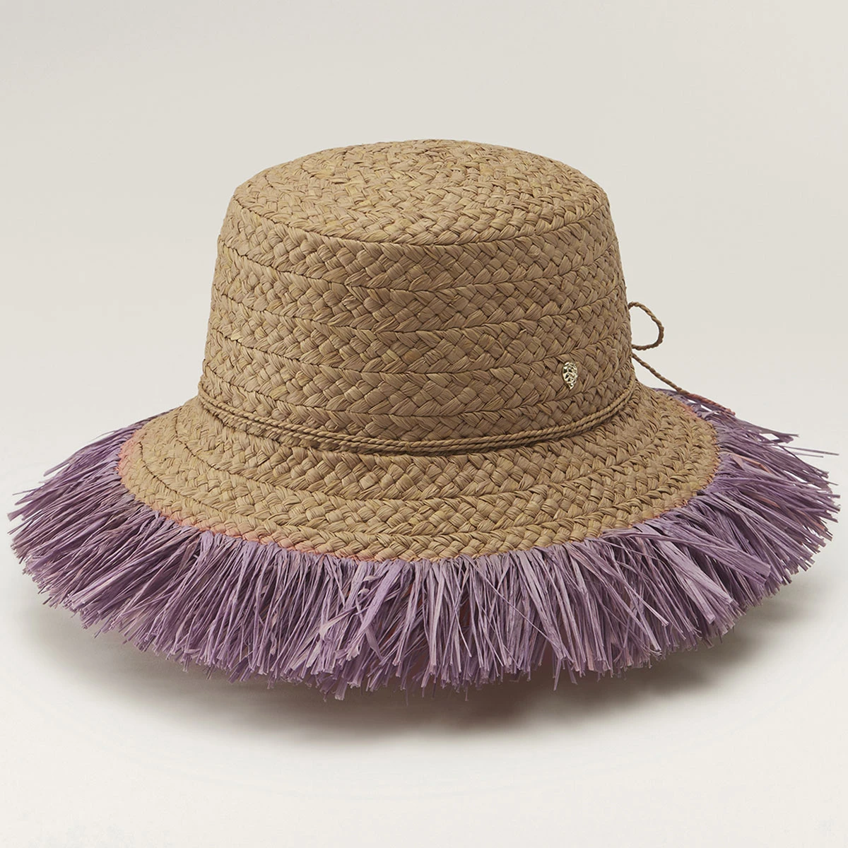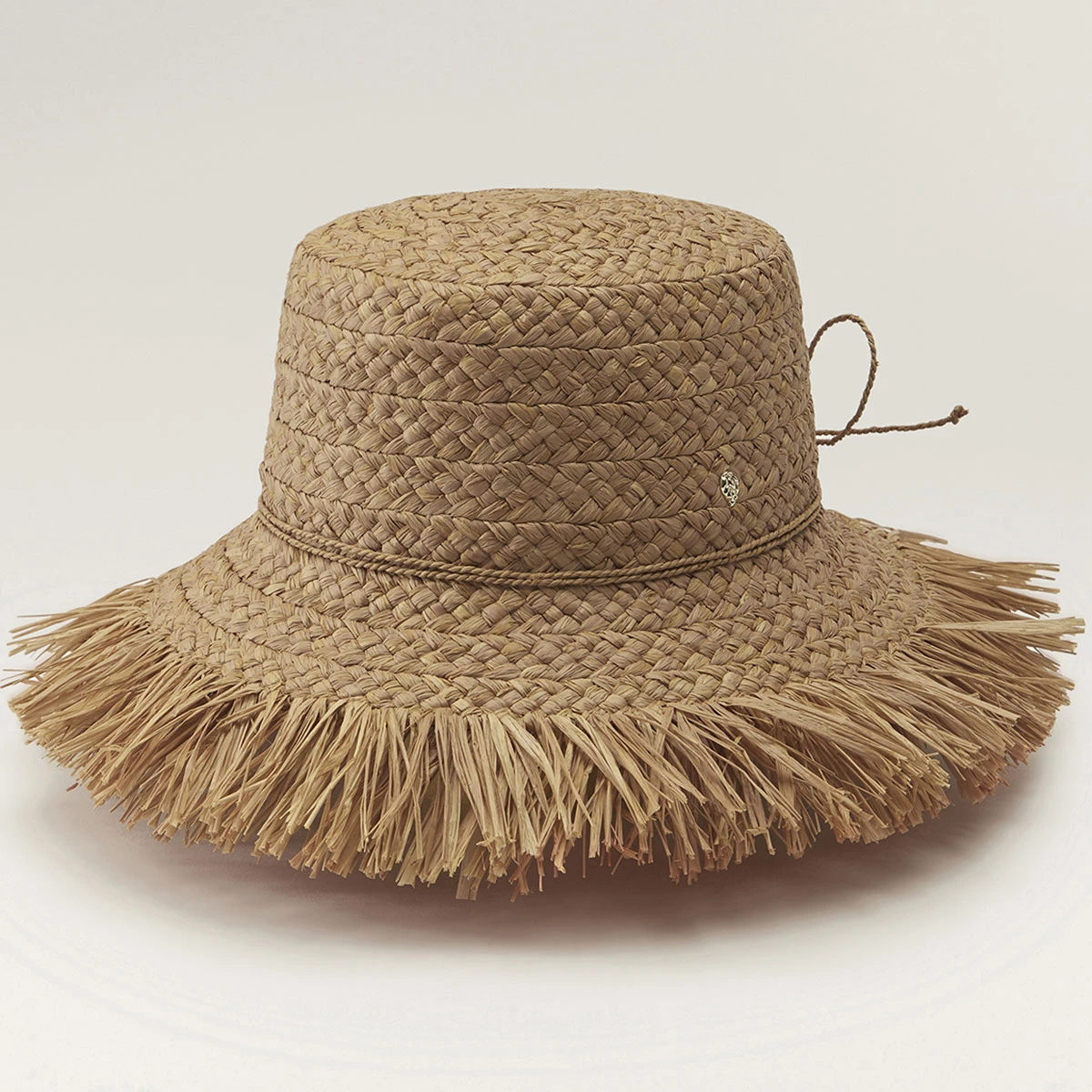 The Sella by Helen Kaminski is a chic bucket hat crafted from 100% raffia crochet wide braid. It features a playful fringe detail along the brim edge and is accented with a hand-rolled raffia string adjuster along the crown. Show off your play-ful side.