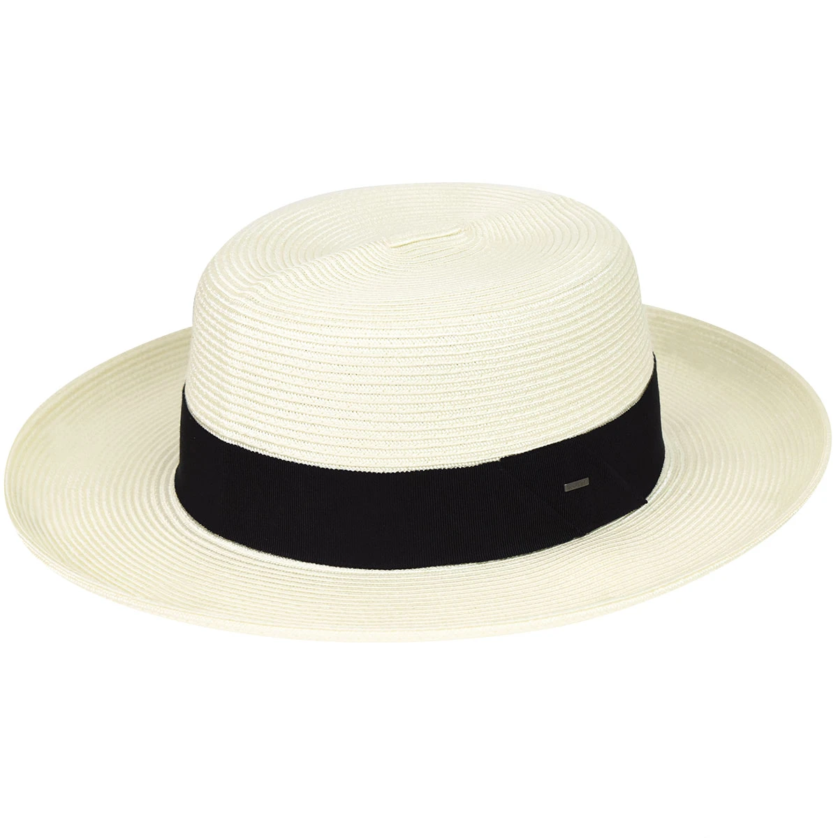 The Tim Fedora by Bailey 1922 features an optimo crown and wide brim that is quite the stunner. Bailey used their highest quality braid in a solid color and finished with off with a wide grosgrain ribbon that has their signature double diagonal folded finish.