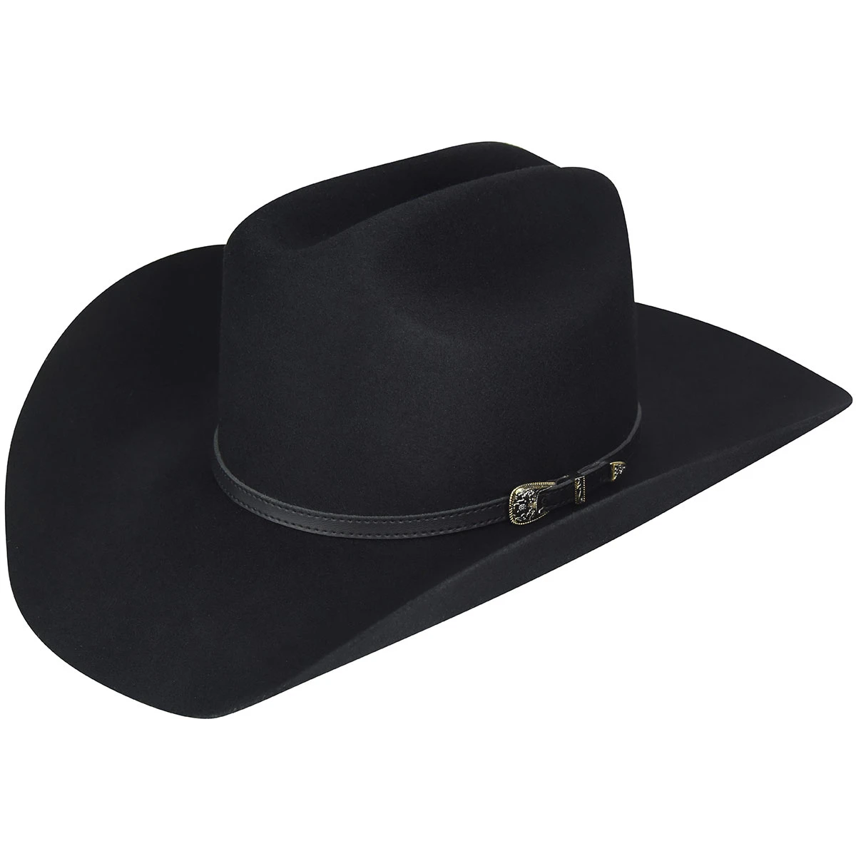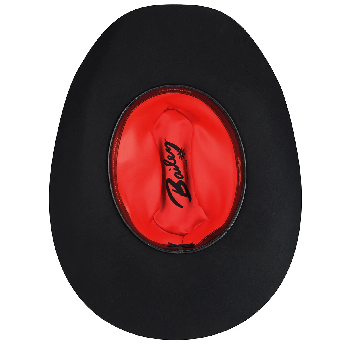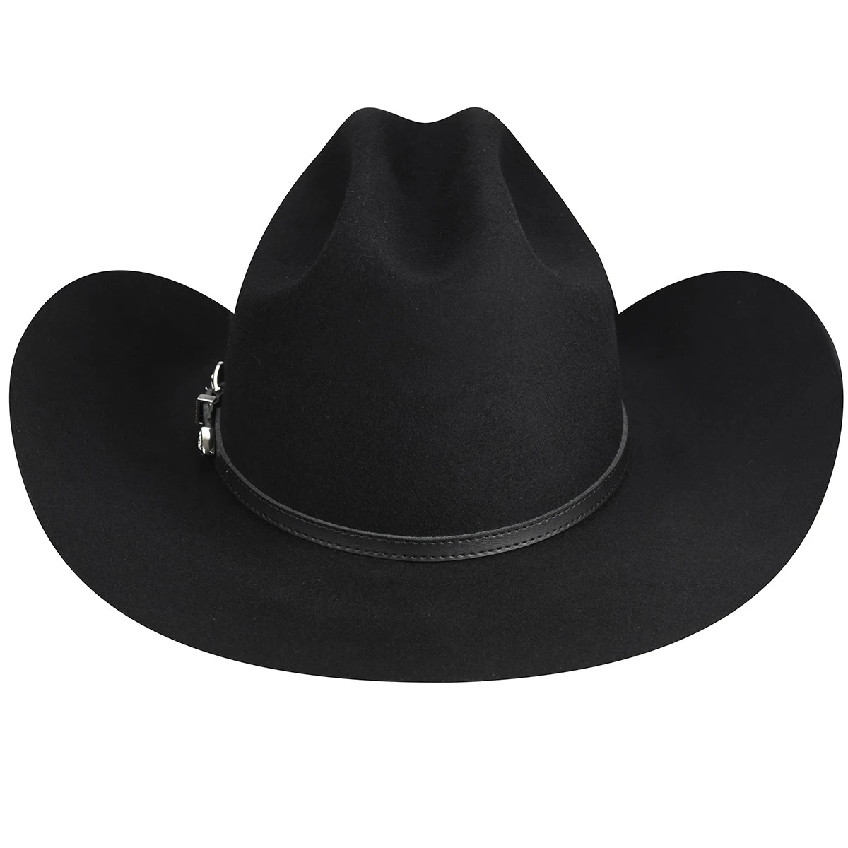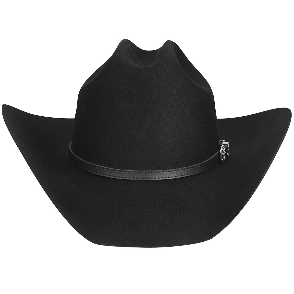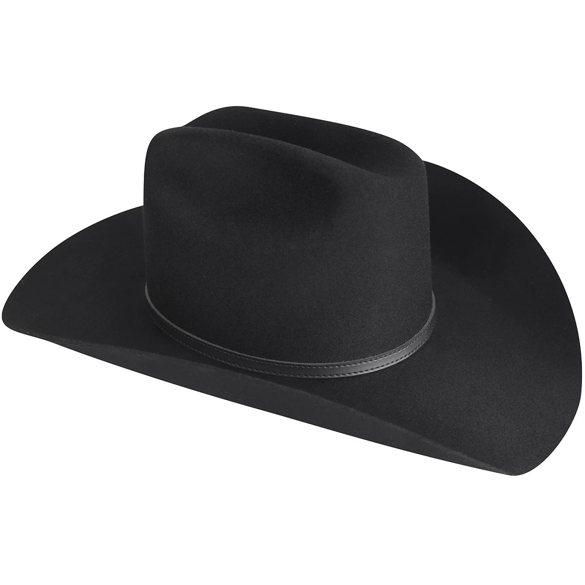 The western Wichita 2X from Bailey Western is a proud cattleman’s style that nicely showcases a leather headband trimmed with an ornate gold and silver buckle that accent the 4″ raw edge brim. Glistening in the sun out in the rolling fields, the Wichita is a hat for travelers and adventurers alike. Made from smooth wool felt, the modestly-priced Wichita is a quality option. The Wichita 2X is fully lined and has a comfort sweatband.