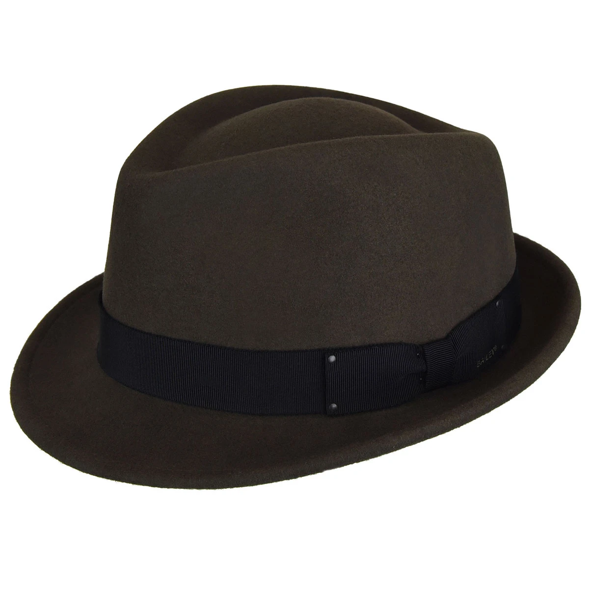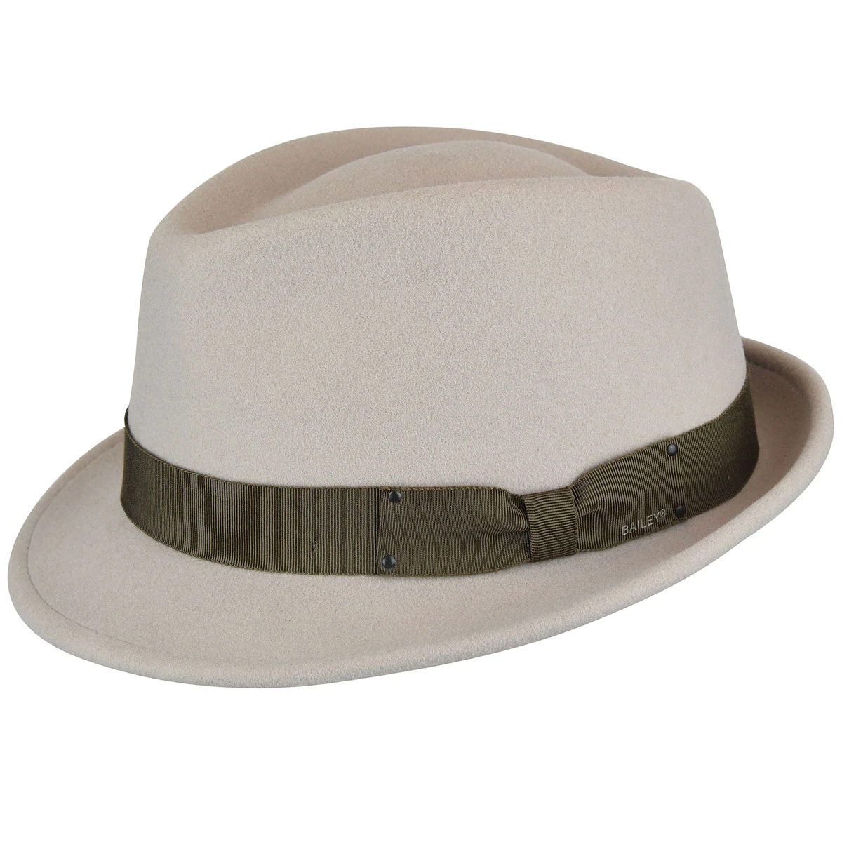 The Bailey 1922 Wynn is a contemporary fedora for the classiest of public semblances. This timeless contoured shape with a pre-snap brim and teardrop crown is made from Bailey’s incredible 100% wool LiteFelt® material – designed for moisture resistance and shape retention. The Wynn’s incredible fabric memory will always spring back to its original shape upon compaction, allowing for repeat usage throughout a busy yet fashionable week. Wear the Wynn anywhere and fear not the elements, whether weather-related or otherwise!