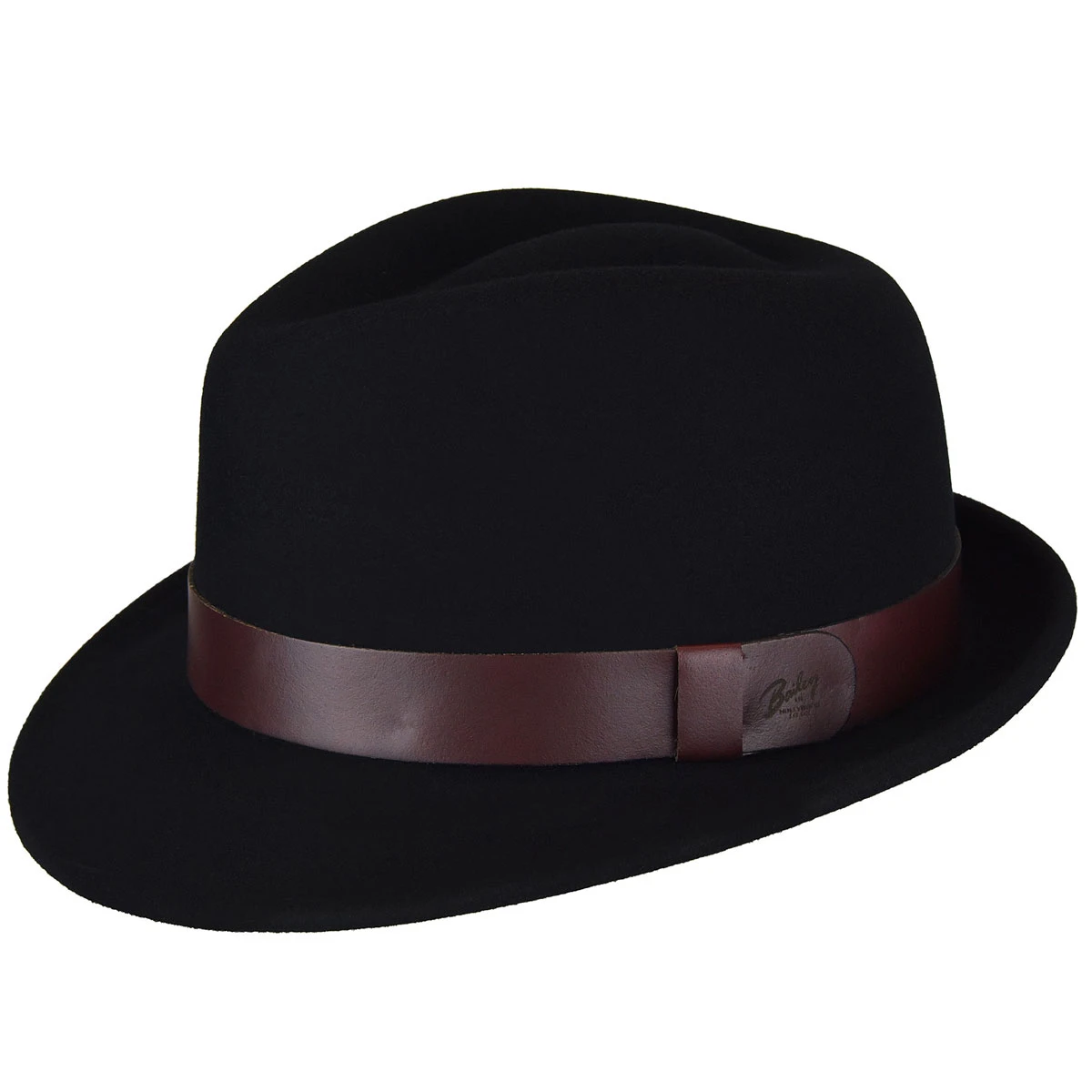 Made in the USA by Bailey 1922, the dapper Yates trilby is a wonderful addition to the season’s vast LiteFelt® collection. This packable and water repellent fedora has a 1″ roll brim on the back and sides and a 2″ snap brim in the front, for a special visual aesthetic that should serve to inspire those you may encounter. The leather headband provides a nice touch and a textural counter-balance to the soft, smooth, and maneuverable fabric that composes this classic. With a tall crown that stands out and distinguishes, the cosmopolitan Yates is a new standard that is here to stay.